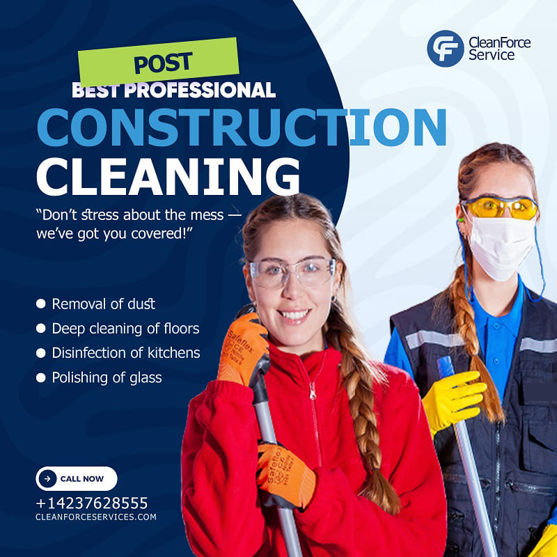 Is a specialized cleaning service performed after a construction or renovation project is completed. Its main goal is to remove dust, debris, and leftover construction materials (such as paint, drywall, adhesives, etc.) to ensure the space is clean, safe, and ready for occupancy or use.